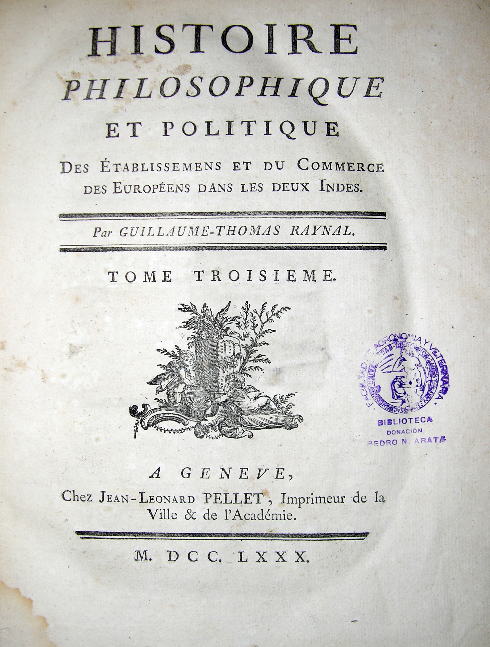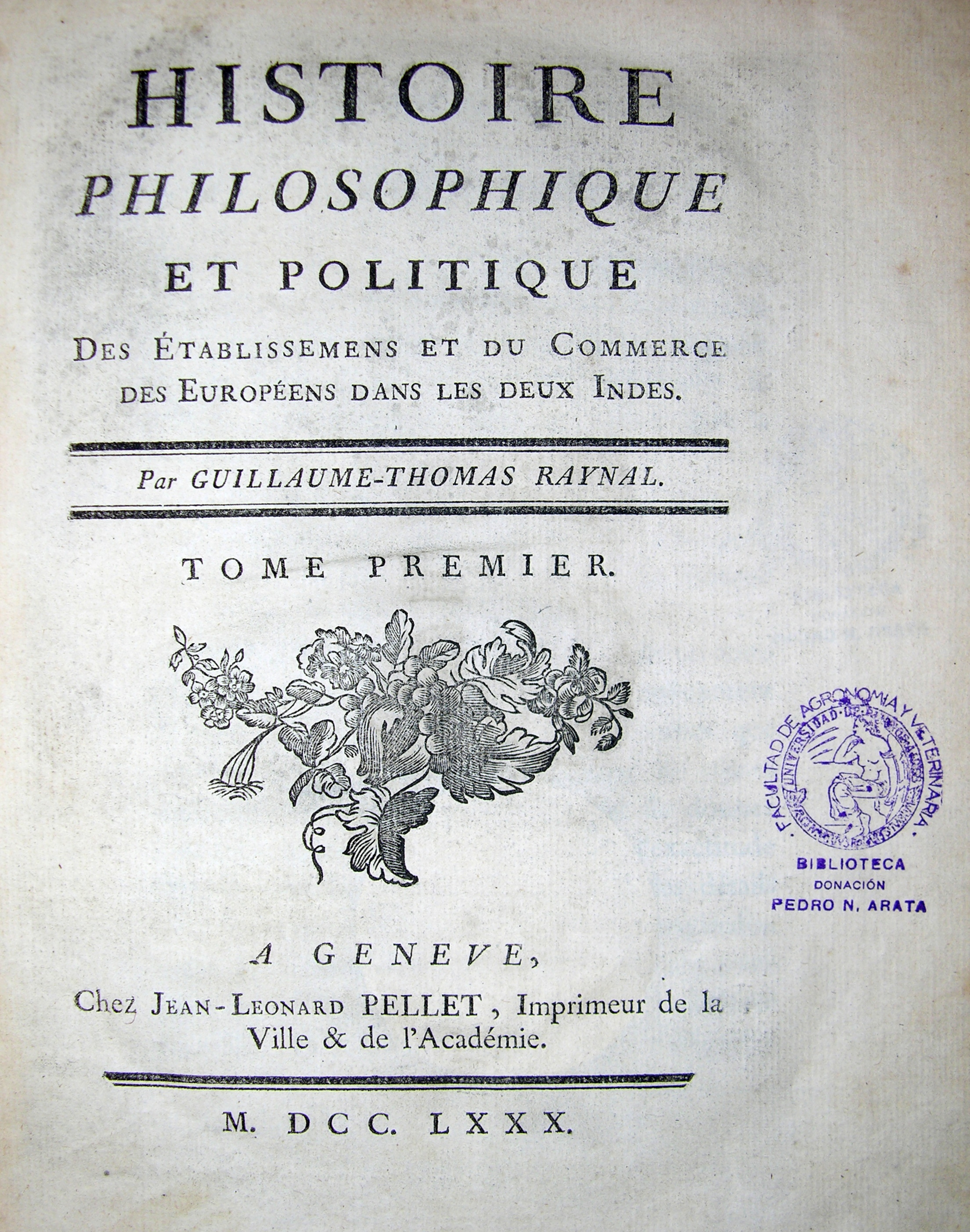 Histoire philosophique et politique des établissemens et du commerce des Européens dans les deux Indes. Tome premier [-quatrième]