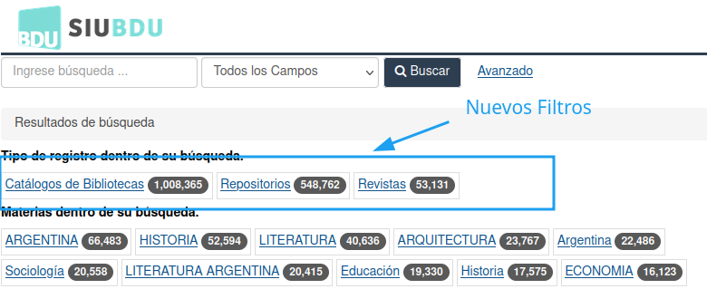 Para que resulte más fácil la selección desde las facetas de los diferentes tipos de registros se han modificado los filtros en el catálogo.